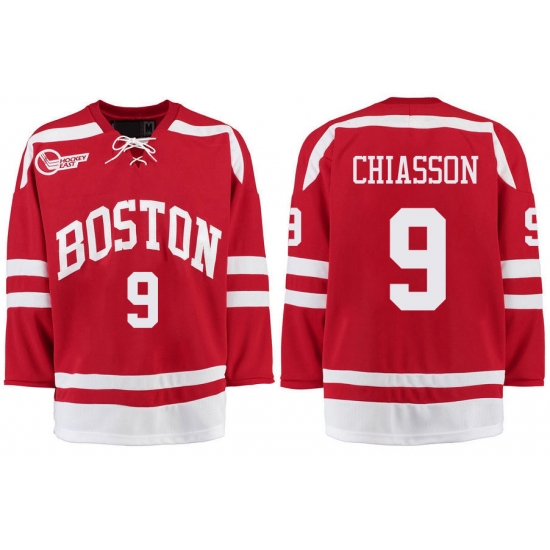- Boston University Terriers BU 9 Kieffer Bellows Red Stitched Hockey Jersey