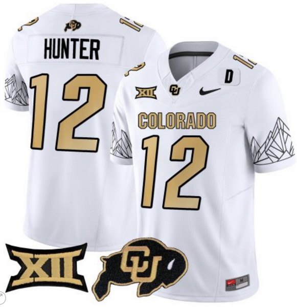 - Men COLORADO BUFFALOES White #12 Travis Hunter Stitched NCAA Jersey