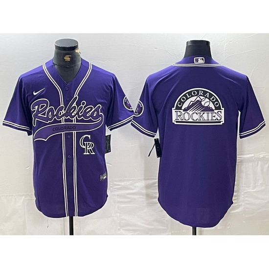 - Men Colorado Rockies Purple Team Big Logo Cool Base Stitched Baseball Jersey