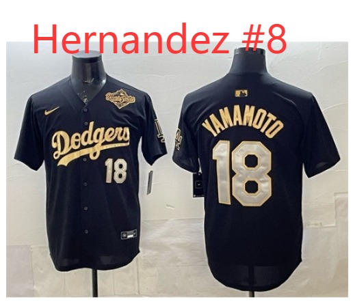 Men Los Angeles Dodgers Enrique Hernandez #8 Black Gold 2025 World Series Patch Limited Stitched Baseball Jersey