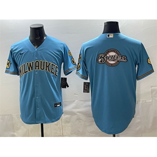 - Men Milwaukee Brewers 2 Brice Turang Powder Blue City Connect Cool Base Stitched Jersey