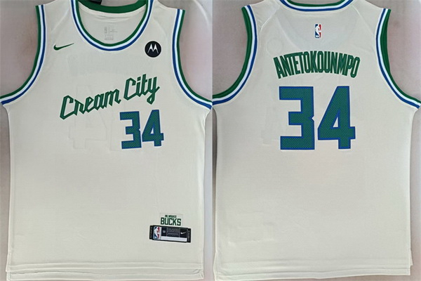 - Bucks 34 Giannis Antetokounmpo Cream Basketball Swingman City Edition 2019 20 Jersey
