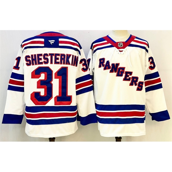 - Men New York Rangers 13 Alexis Lafreniere White 2024 25 Away Stitched Hockey Jersey
