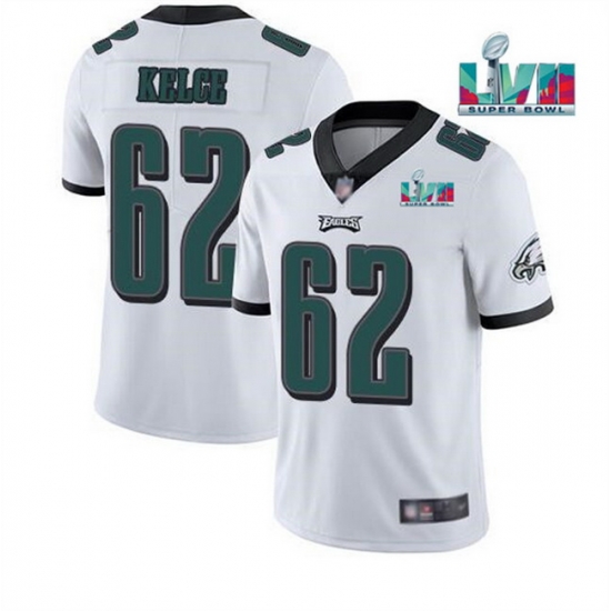 Home>NFL>2023 Super Bowl LVII>Philadelphia Eagles>Men Women Youth Toddler Philadelphia Eagles 62 Jason Kelce White Super Bowl LVII Patch Vapor Untouchable Limited Stitched Jersey