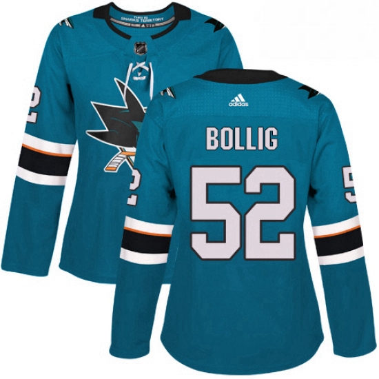 - Womens Adidas San Jose Sharks 52 Brandon Bollig Authentic Teal Green Home NHL Jersey